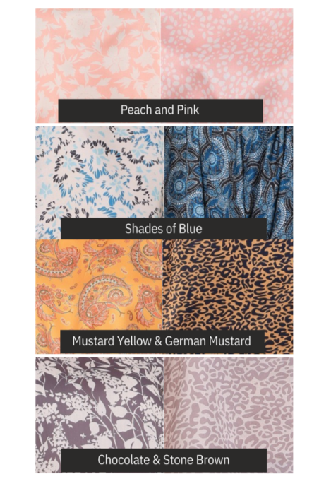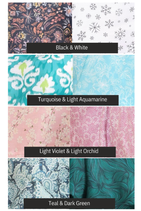 Teal & Dark Green: Deep and rich, teal and dark green form a harmonious pairing that brings depth and sophistication to fabrics. The balance between these earthy tones creates a serene yet grounded feel, perfect for more nature-inspired or luxurious designs.